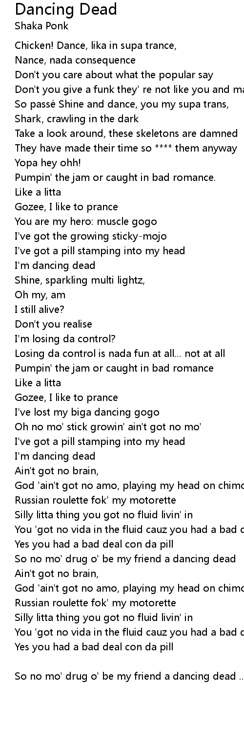 | So no mo' drug o' be my friend a dancing dead x3 | |