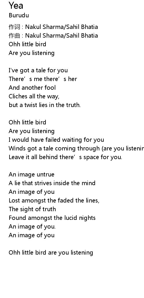 | Ohh little bird are you listening |