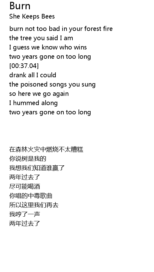 | [00:-0.02] | burn not too bad in your forest fire |