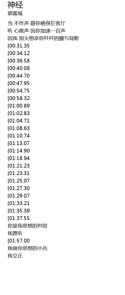 | [02:42.32][01:13.07] | shén jīng dōu yǐ jīng |