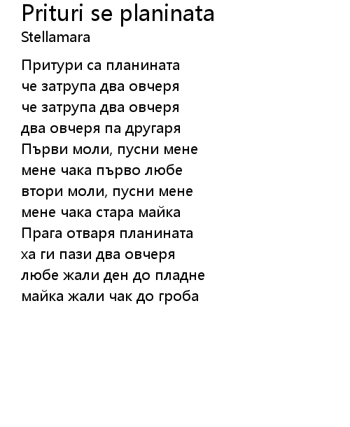 | Song | Prituri se planinata |