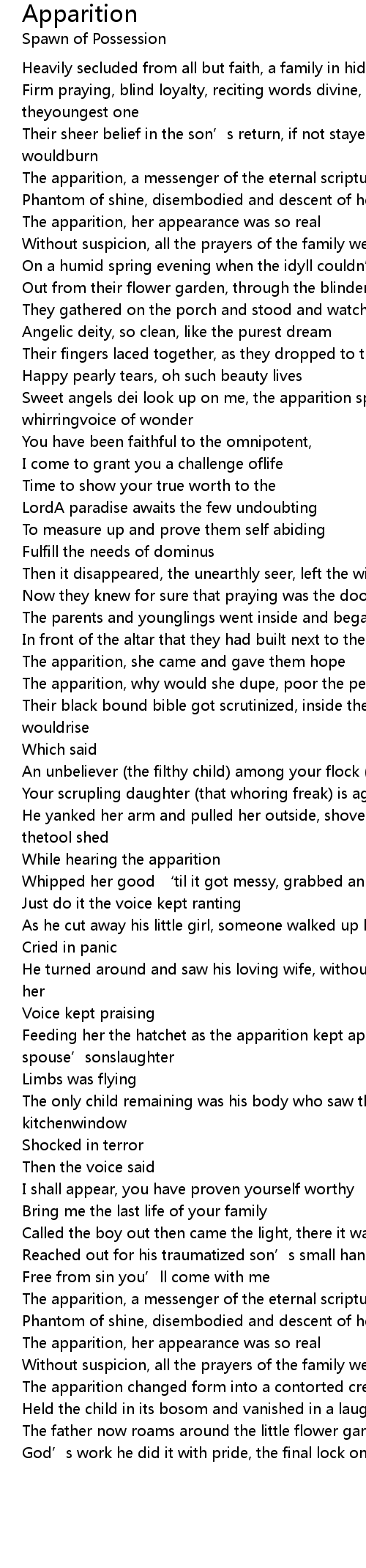 | Their black bound bible got scrutinized, inside the father' s head a voice wouldrise | |