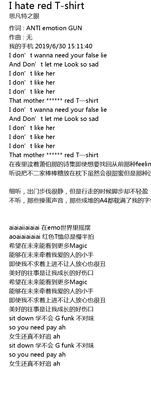 | bù tīng, nèi xiē cāo dàn shēng yīn, nèi xiē chéng duī de A4 dōu zài mǎn le wǒ de zì jù | |