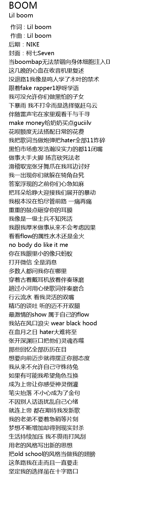 | [00:00.000] | 作词 : Lil boom |