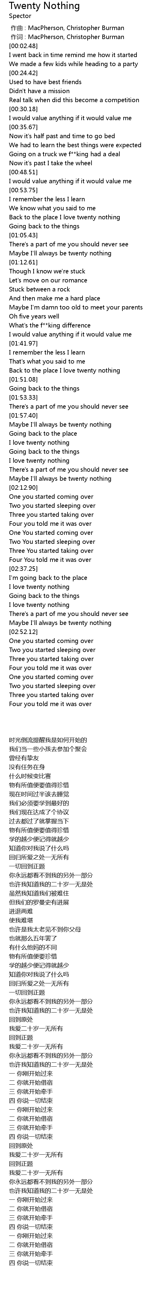 | [02:41.69] | I love twenty nothing |