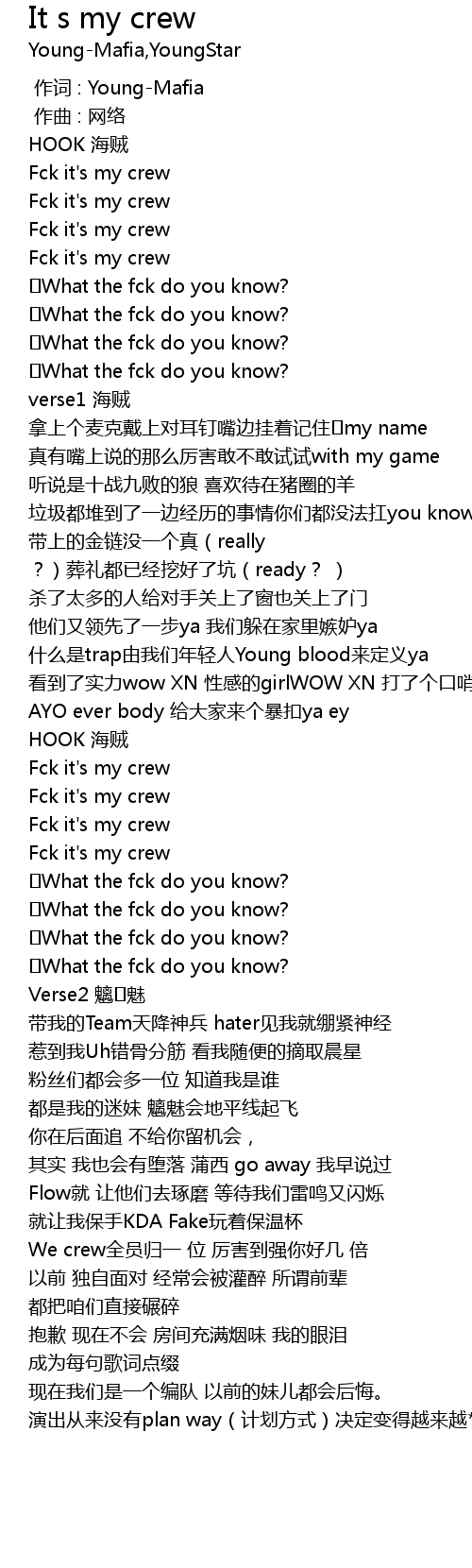 | [00:48.437] | shen me shi trap you wo men nian qing ren Young blood lai ding yi ya kan dao le shi li wow XN xing gan de girlWOW XN da le ge kou shao bei ying sha shou NO XN |