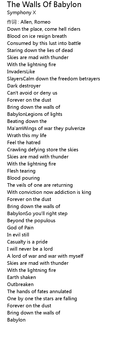 | Song | The Walls Of Babylon |
