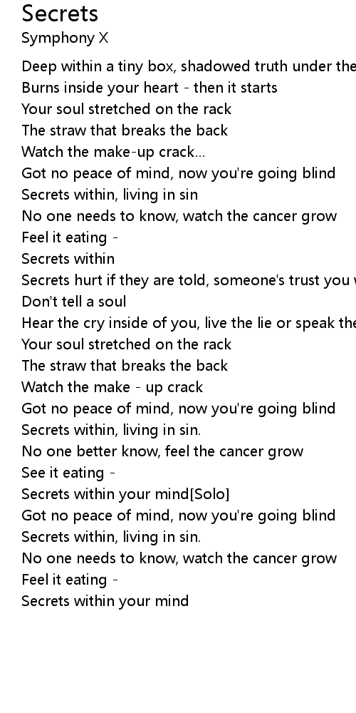 Secrets hurt if they are told, someone's trust you willhave sold - |
