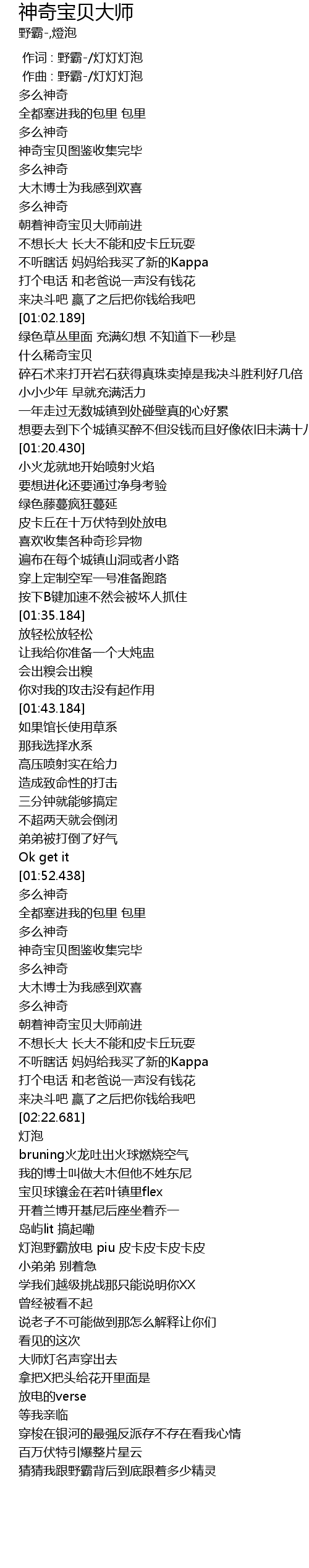 | [02:33.932] | 灯泡野霸放电 piu 皮卡皮卡皮卡皮 |