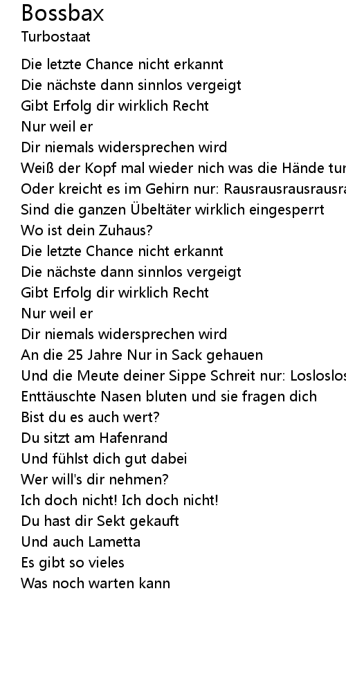 | Song | Bossbax |