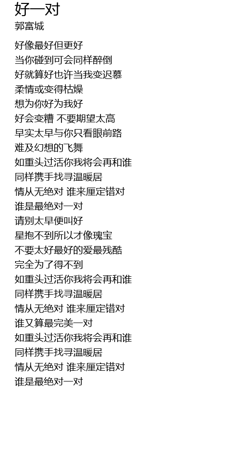 | [02:46.40] | shuí yòu suàn zuì wán měi yī duì |