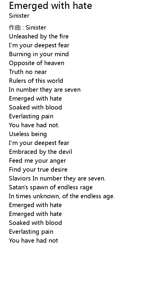 | Song | Emerged with hate |