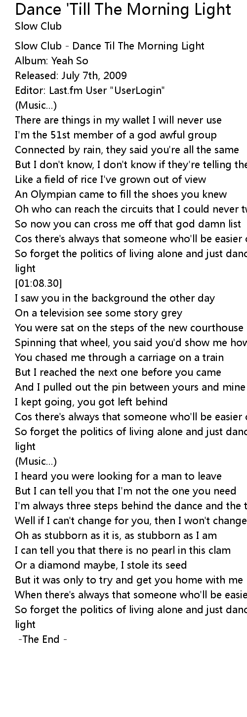 | [00:01.00] | Slow Club - Dance Til The Morning Light |