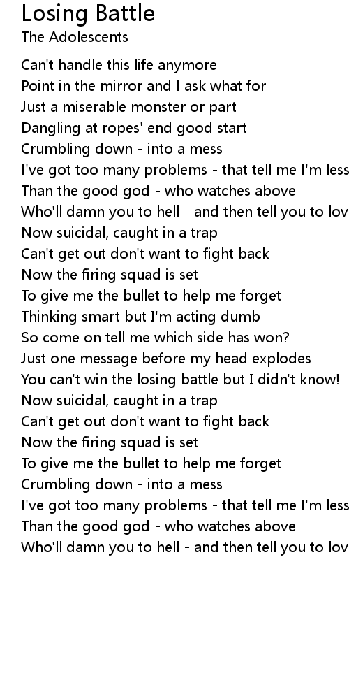 You can't win the losing battle but I didn't know! |