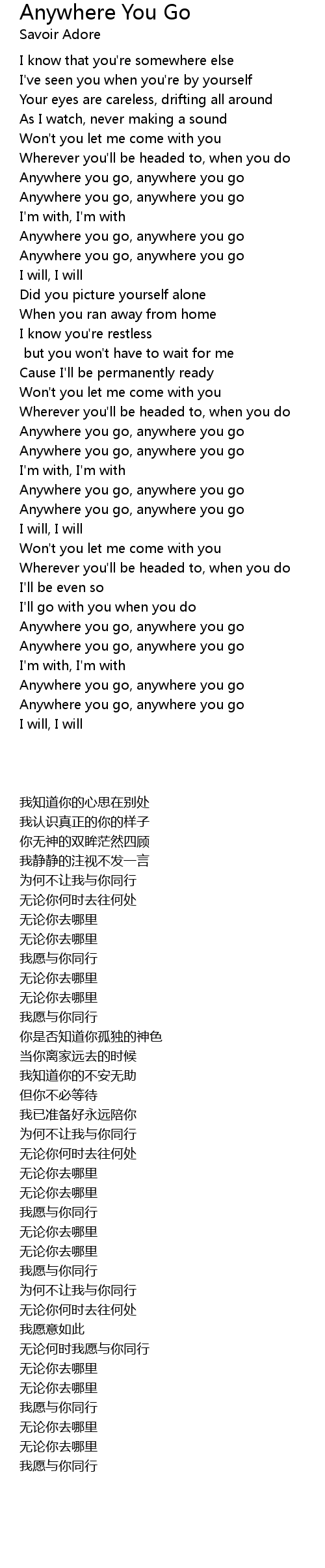Anywhere you go, anywhere you go |