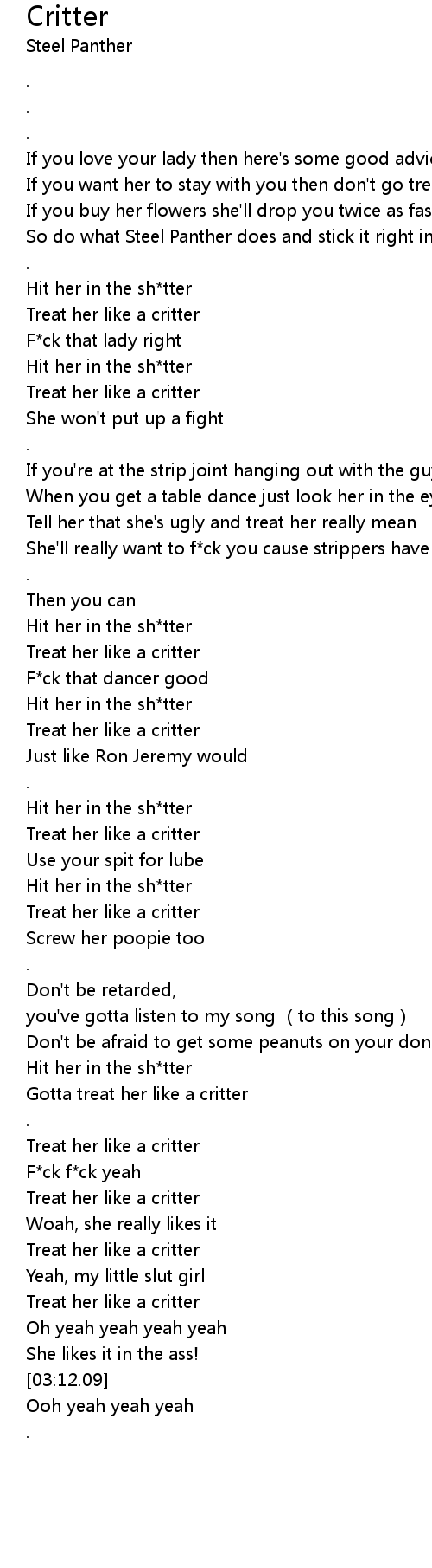 | [02:54.28] | Treat her like a critter |