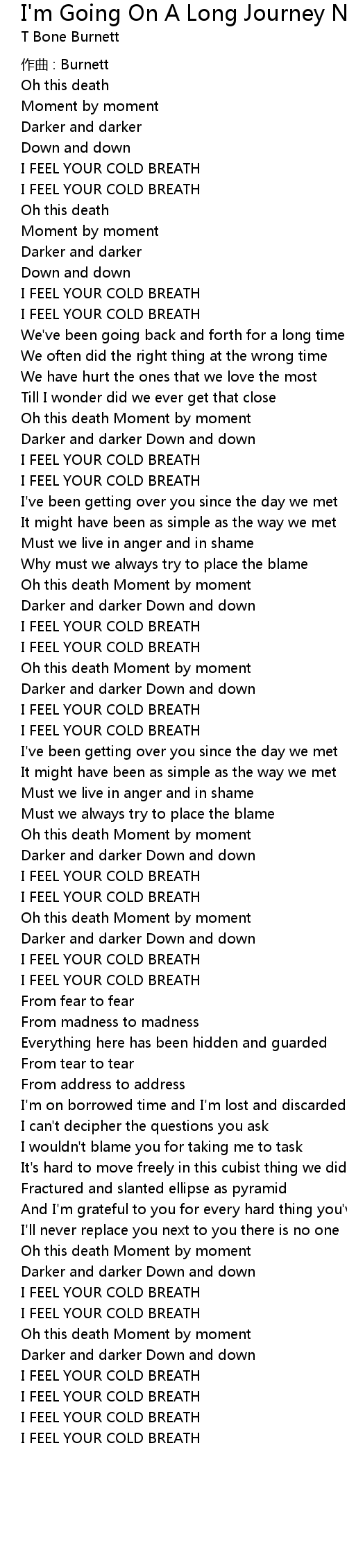 | Song | I'm Going On A Long Journey Never To Return (Album Version) |