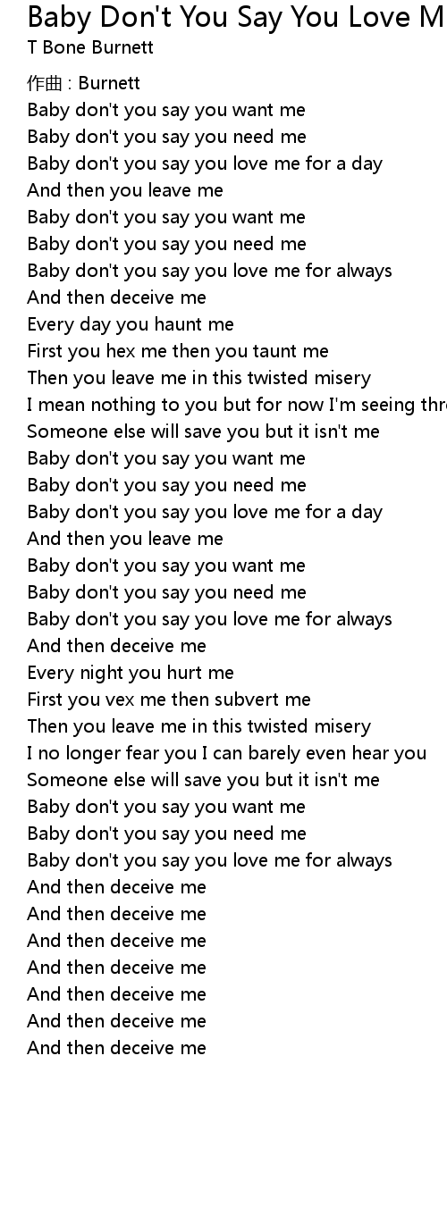 | Song | Baby Don't You Say You Love Me (Album Version) |