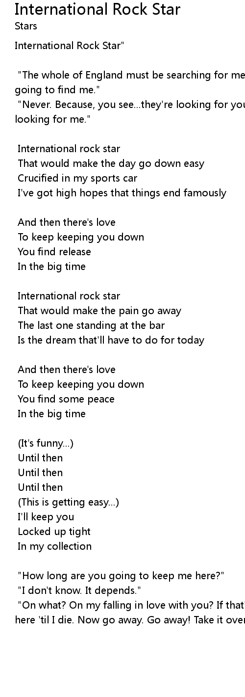 "On what? On my falling in love with you? If that's what you think, I'll be here 'til I die. Now go away. Go away! Take it over... |