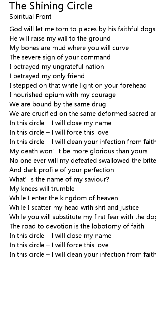 | In this circle I will clean your infection from faith |