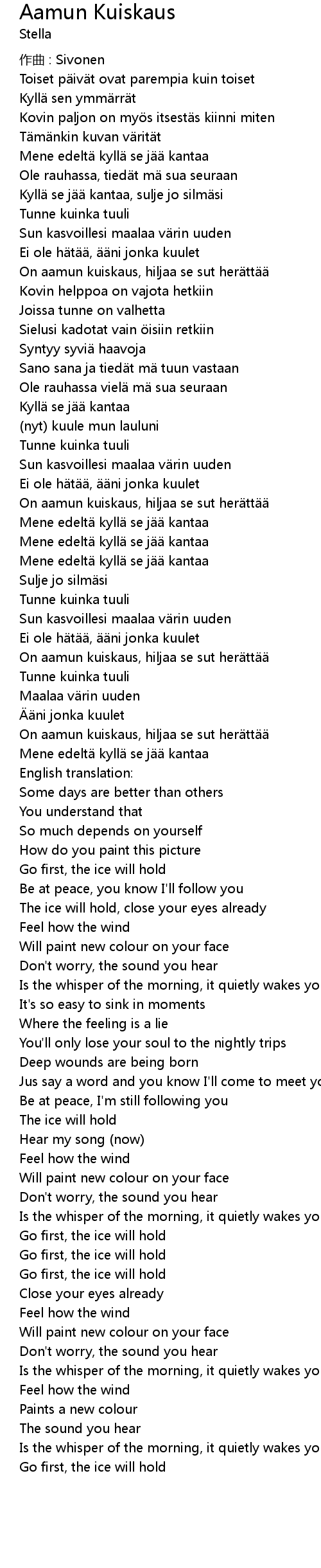 | On aamun kuiskaus, hiljaa se sut her tt | |