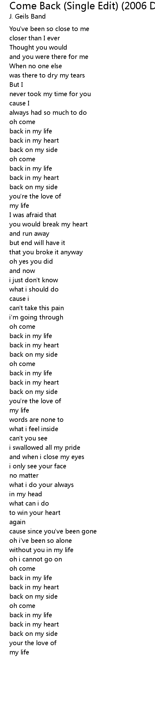 Come Back (Single Edit) (2006 Digital Remaster) Lyrics