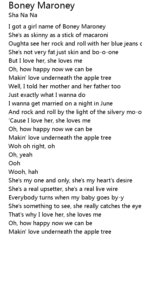 I got a girl name of Boney Maroney |