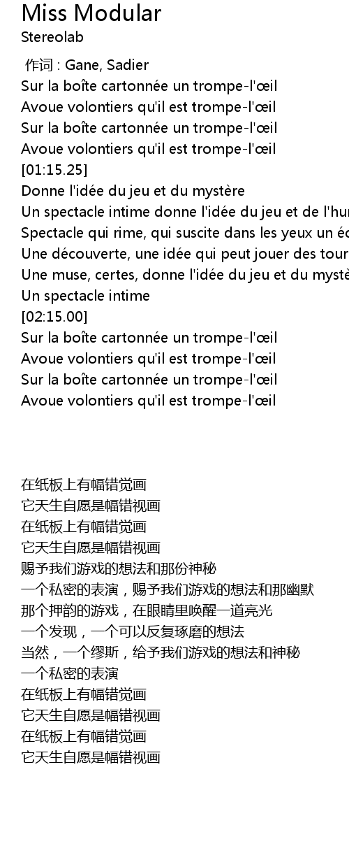 | [00:59.84] | Sur la boîte cartonnée un trompe-l'œil |