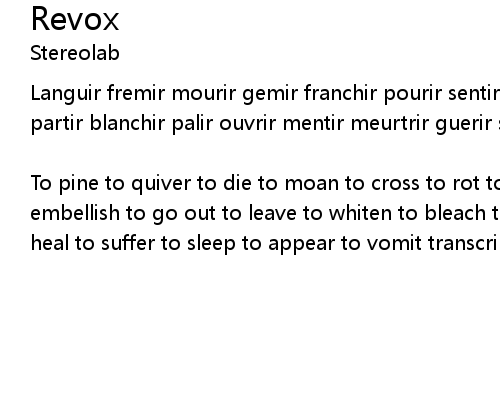 | Languir fremir mourir gemir franchir pourir sentir murir fleurir embellir sortir partir blanchir palir ouvrir mentir meurtrir guerir souffrir dormir surgir vomir | |