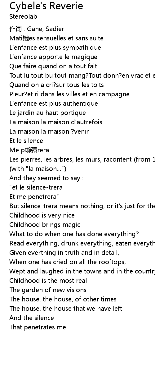 | But silencetrera means nothing, or it' s just for the rhyme. cybele' s reverie | |