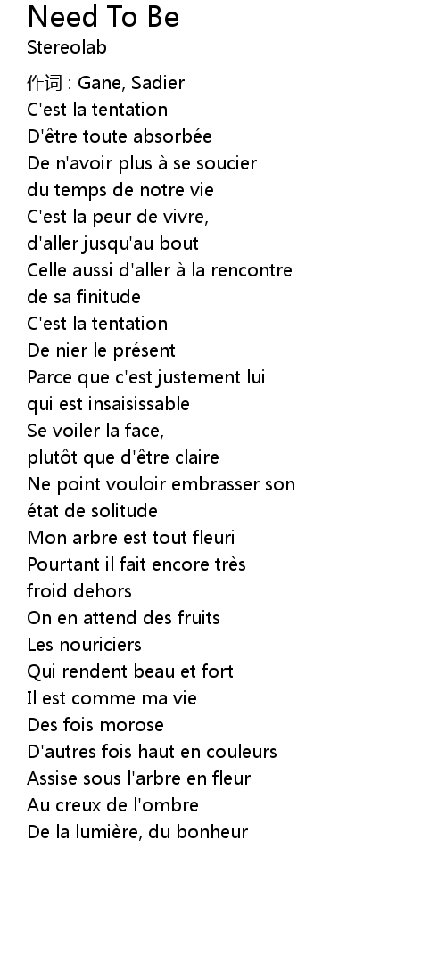 | 作词 : Gane, Sadier | |