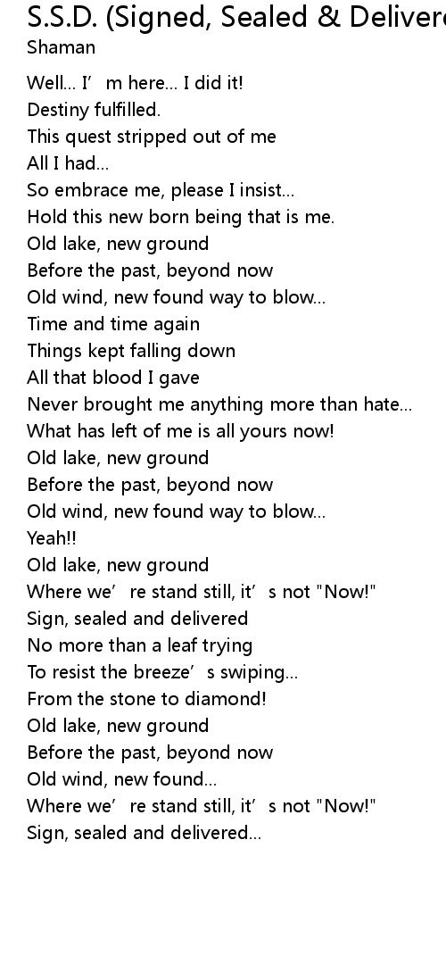 | Sign, sealed and delivered | |