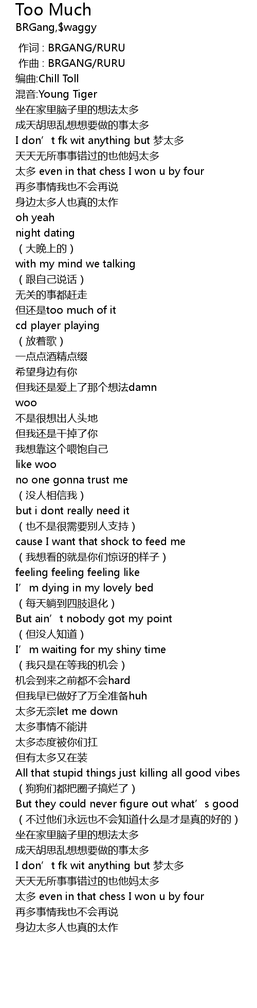 | [01:54.400] | 太多 even in that chess I won u by four |