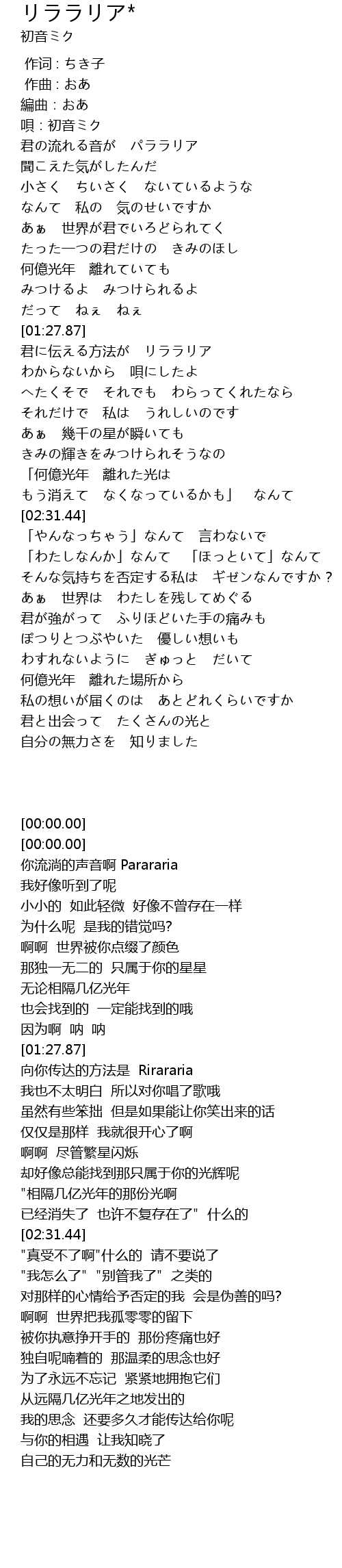 | [00:00.00] | 唄:初音ミク |