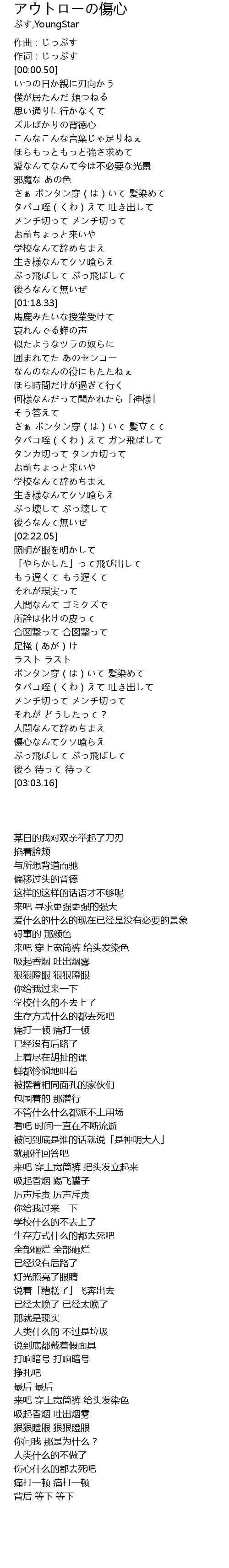 | [02:14.98] | 生き様なんてクソ喰らえ |