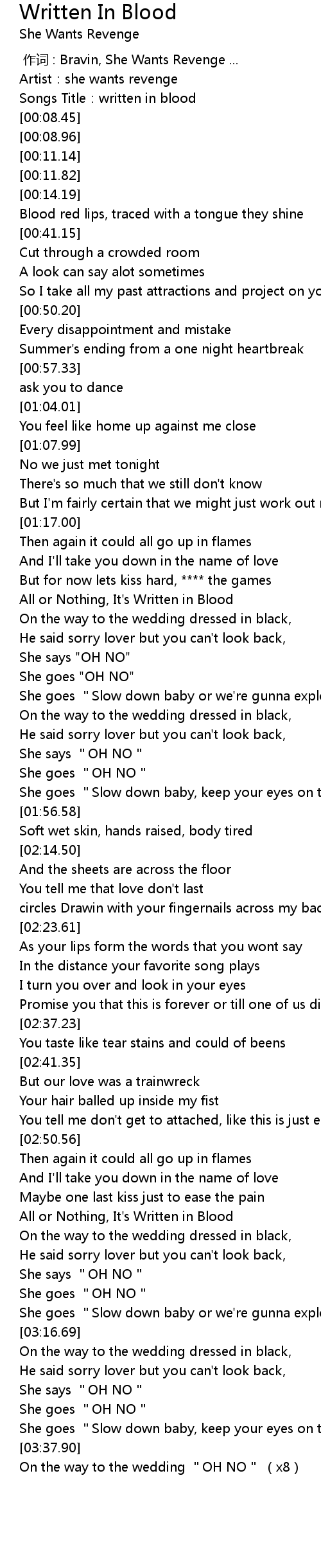 | [03:01.30] | All or Nothing, It's Written in Blood |