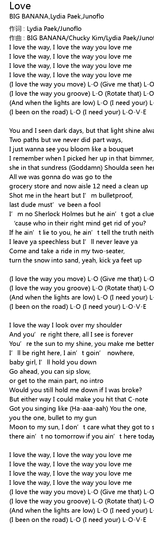 | (I love the way you move) L-O (Give me that) L-O-V-E | |