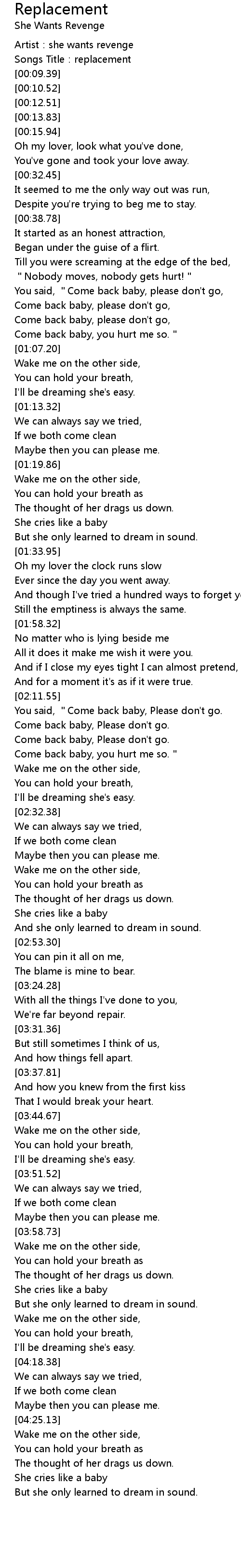 | [00:04.58] | Artist:she wants revenge |