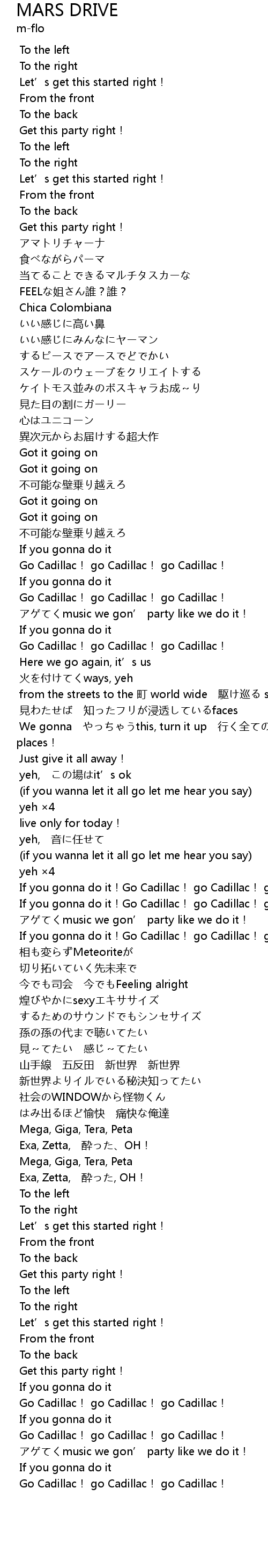 | [02:43.978] | If you gonna do it! Go Cadillac! go Cadillac! go Cadillac! |