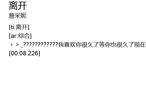 | [00:02.678] | _???????????? wo xi huan ni hen jiu le deng ni ye hen jiu le xian zai wo yao li kai bi hen jiu hen jiu hai yao jiu xiao wu zhi zuo |