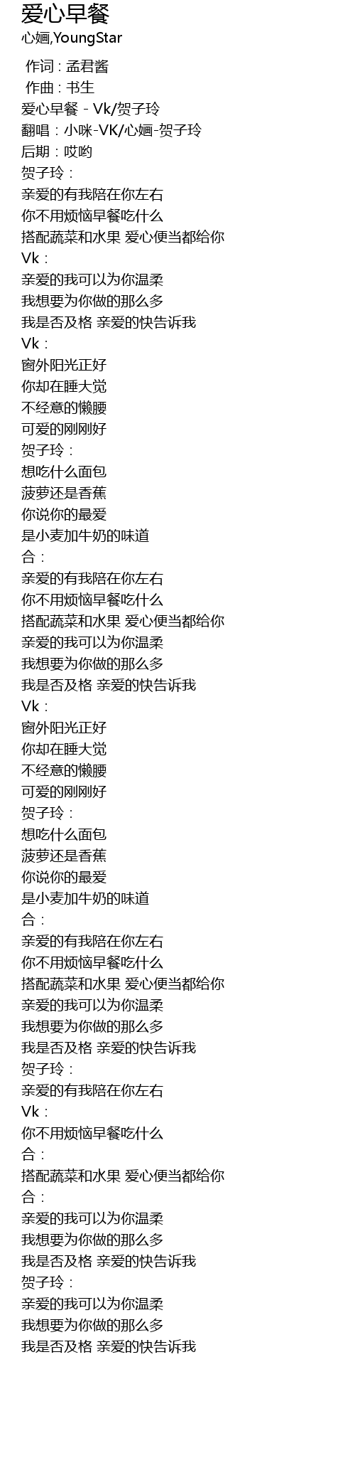 | [00:01.09] | 爱心早餐 - Vk/贺子玲 |