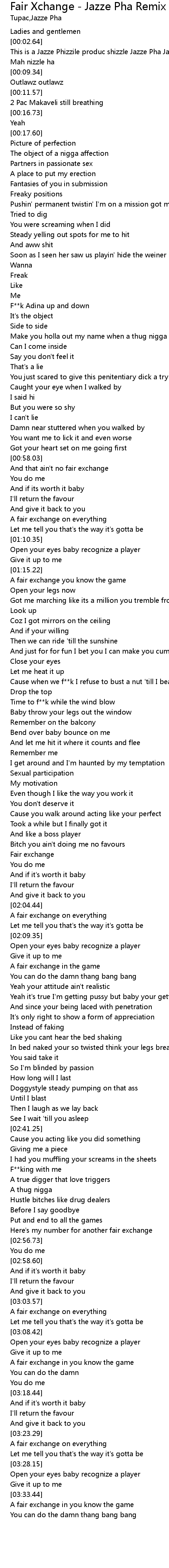 | [02:19.96] | Yeah it's true I'm getting pussy but baby your gettin' dick |