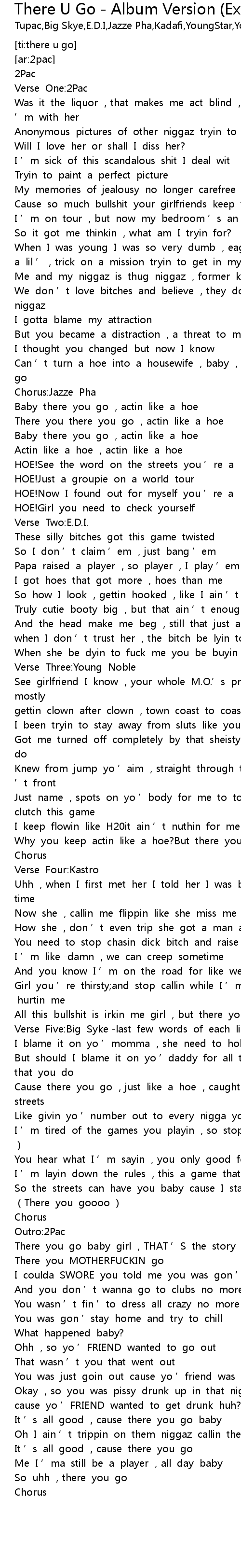 | [03:32.70] | Cause there you go ,just like a hoe ,caught in the streets |