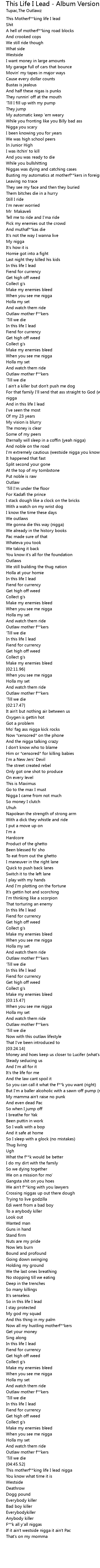 This motherf**king life I lead nigga |