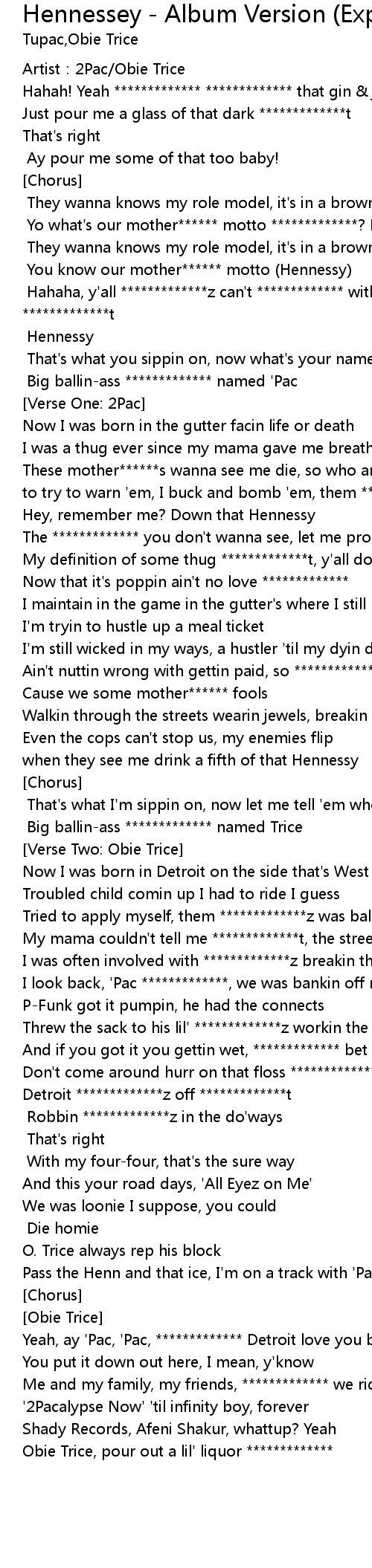 | [2Pac] | Hennessy |