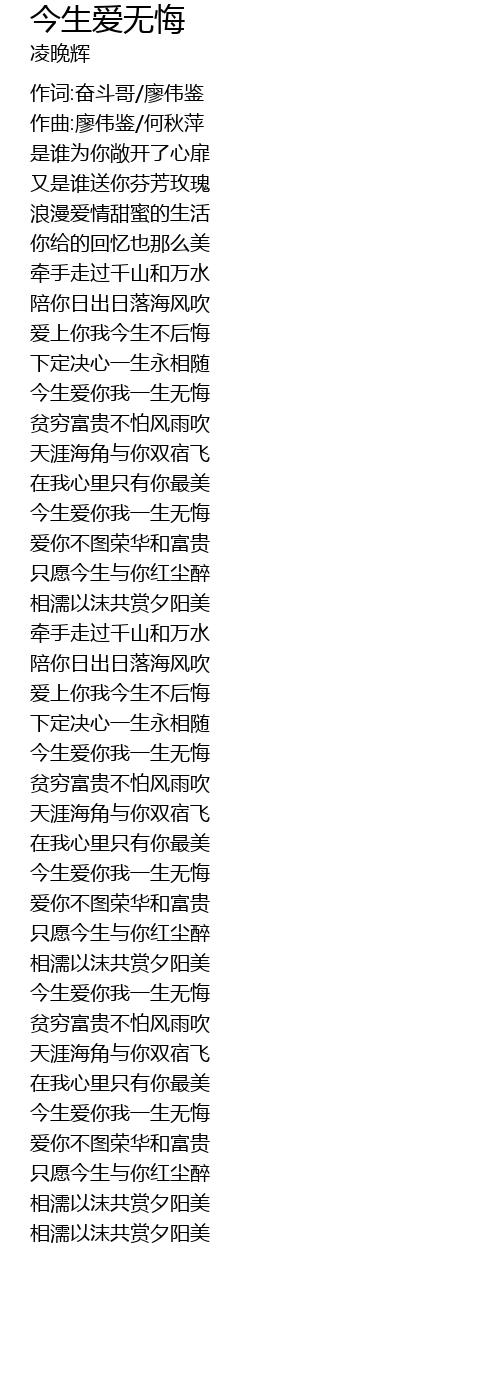 | [03:10.41] | 今生爱你我一生无悔 |