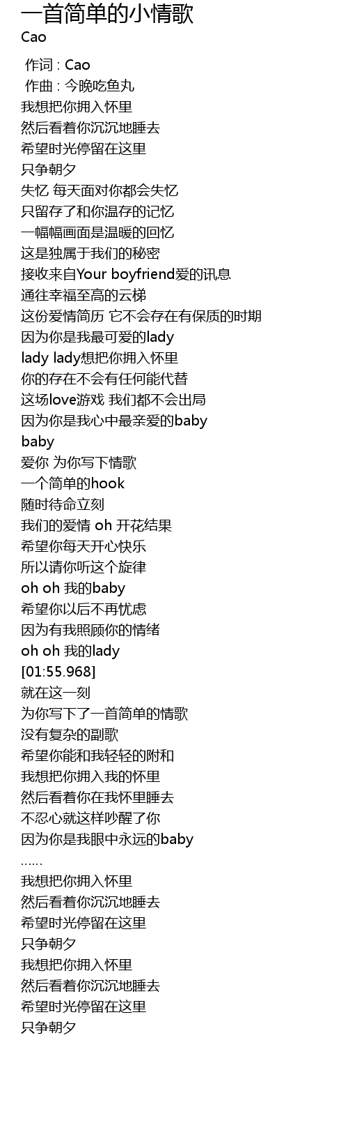 | [01:58.722] | 为你写下了一首简单的情歌 |