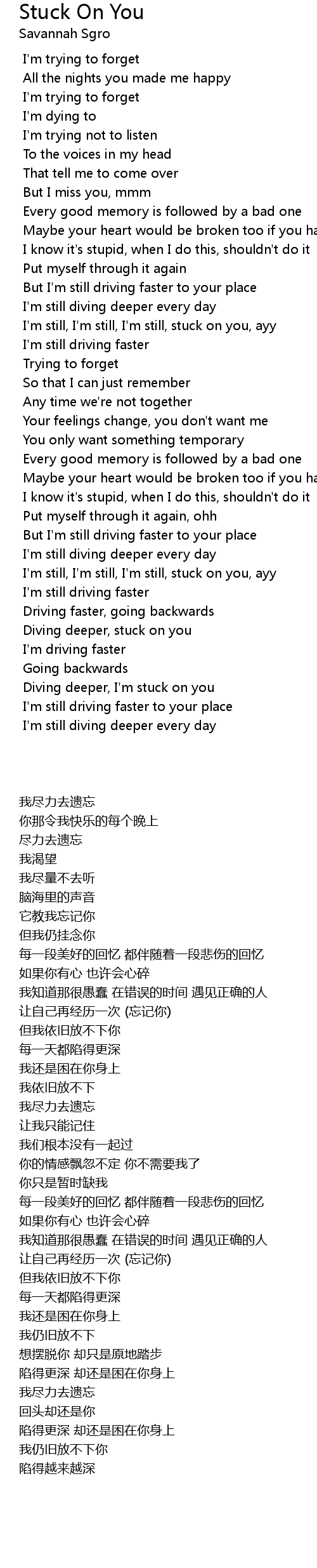I'm still, I'm still, I'm still, stuck on you, ayy |