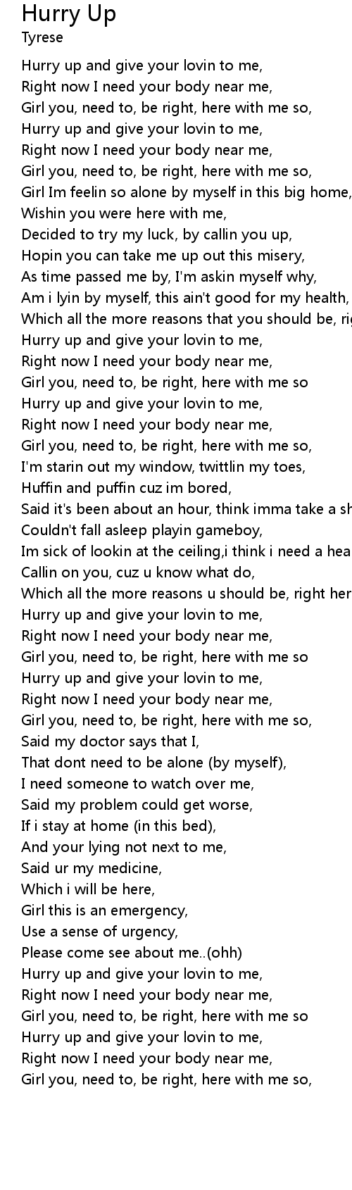 | Hurry up and give your lovin to me, | |