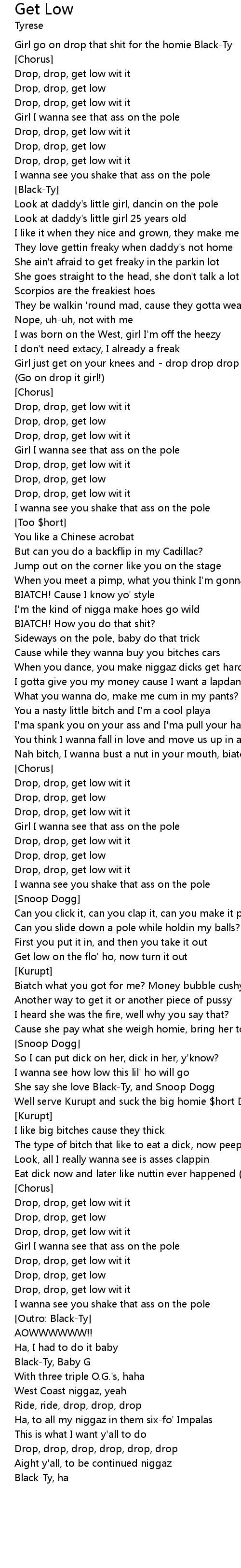 | Eat dick now and later like nuttin ever happened (get low bitch) | |